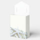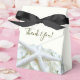Möhippa, stjärnfisk och vätebutik för att tacka gästerna. Benvit liten låda med ett veck över överkant och band bundet i en båge. Svart menyfliksområde visas med andra alternativ för färg. "Tack"-text i skript på överdelen är en mall och havsstjärnan och blommor trycks på framsidan och baksidan. Även använda på bröllopsreceptioner eller en dusch för paret. Se mer i Seaside Garden-designlinjen och läs mer om produkten nedan.