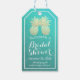 Bröllop Möhippa Tack Gift Märkres - Elegant Faux Gold Foil Pineapple Couple på Teal Grönt och Turcos Blue Ro Blommigt Damask Papper bakgrund. En Perfekt för din stora dag. Alla textstorlekar i stil, färg, kan ändras för att passa dina behov!