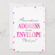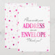 Denna moderna skylt "Skriv ditt namn och adress på ett kuvert" har en rosa magenta bakgrund med metallisk konfetti. Texten är skriven i en kombination av ett lekfullt kalligrafiskt teckensnitt och ett modernt serif-teckensnitt.
