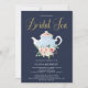 Möhippa Tea Elegant Blommigt Gold Foil Inbjudningskort för möhippan - har en tekanna för elegant som är försedd med rosa och ro blommor med naturgrej. Möhippan finns i ett modernt kalligrafteckensnitt i guld-folie. Vilken underbar inbjudan för vilken möhippa som helst. Inbjudningskort för möhippan ingår i en samling.