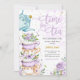 Möhippa Tea Party Lila och Guld Blommigt Inbjudningar