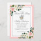Möhippa Tea Party Watercolor Rosa White Blommigt och Silver Inbjudan - Rosa Gräns