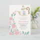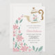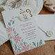 Inbjudningskort för möhippan med en gräns av rosa blommor och grönt som flödar från en söt, vismisk tekanna. Anpassa med din information så att bruden blir. Klicka på "klicka för att anpassa ytterligare" om du vill ändra teckensnittet stil, storlek eller färg.
