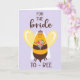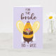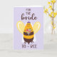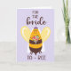 Det här är ett lustigt kort med Möhippa med ett bi som bär krona med en slöja med en blombukett med vitt band. I texten står det: "För Bride att bli."