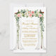Elegant bröllop Canopy Watercolor Rosa Blommigt Inbjudningskort för möhippan Card omfattar vackert rosa ros och vit ros. Träets kanopy-båge i bröllop omfattar botaniskt grönt. Guld-skript.