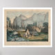 Bancroft Bibliotek Presenter: En avlägsen syn på fall med indisk camping i förgrund som visar en teepé, en kvinna med barn, ungdomar och tre vuxarna män med vapen. Lithograph färgad och publicerad av J. Gemmel (firma) btw. 1850 och 1875.