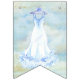 Fira brud-till-vara den överhängande vigselen vid uppställning dessa älskvärda möhippabuntingflaggor på henne möhippapartyet. Den kvinnliga flaggor presenterar en elegant bröllopkappa på en hängare och pastellfärgade färger av blått och lavendel.
