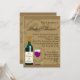 Rik och elegant det moderna contemporaryn vin, temat inbjudningskort för möhippa! Anpassa hela onlinen inbjudan, inklusive etikettbilden vin flaska. Sandy bruna snurrar med vin flaska och glas, snabbt vinbakgrunden, med en solitaire diamant bröllop ring.