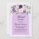 En violett, vattenfärgad lavender-bakgrund. Dekorerad med violett och lila blommor. Anpassa och lägg till information om namn och party. Namn är skrivet med ett handskript i stil