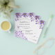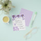 Observera att inbjudan är papper och mycket tunn. Kuvert ingår inte. Om du vill ha mer omfattande inbjudningar (samma design) kan du besöka vår butik. På framsidan: En vit bakgrund med violett, lilac violet klänning och blommigtar. Namn är skrivet med ett modernt handskript i stil. Anpassa och lägg till information om namn och party.