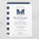 Tungblå Adirondack-stolar stranden tog möhippan med blått och vitt rand på baksidan av denna elegant och kallelse till möhippa för framtida brud och rum. Anpassa som önskat.