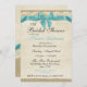 Söt akvblåbön, romantisk land-design med antikvitt snöre och strålande spiralformad. Alla delar av inbjudningskort för möhippan är tryckta, det finns ingen riktig överlappning, snöre eller band fäst.