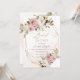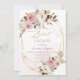 ArtsApp inbjudningskort för möhippan - dammig rosa vattenfärg ro, falllöv och vita daisy sprinklade med guld damm. Alla inslag kan redigeras. Copyright © 2023 ArtsApp™. Alla höger reserverade.
