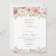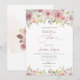 ArtsApp inbjudningskort för möhippan - dammig rosa vattenfärg ro, falllöv och vita daisy sprinklade med guld damm. Alla inslag kan redigeras. Copyright © 2023 ArtsApp™. Alla höger reserverade.