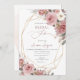ArtsApp inbjudningskort för möhippan - dammig rosa vattenfärg ro, falllöv och vita daisy sprinklade med guld damm. Med en löstagbar faux-guld-gem-facets ram. Alla inslag kan redigeras. Copyright © 2023 ArtsApp™. Alla höger reserverade.