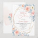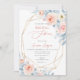 ArtsApp inbjudningskort för möhippan - rosa vattenfärgsro, dammig blå eukalyptus foliage och vita daisy sprinklade med damm från guld. Med en löstagbar faux-guld-gem-facets ram. Alla inslag kan redigeras. Copyright © 2023 ArtsApp™. Alla höger reserverade.