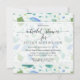 "Terrazzo Blue Grönt Aqua Modern Inbjudningskort för möhippan", som har en mycket modern, abstrakt snyggt, har färgats i akryl-vattenfärg på arbetsytan. Sea Glass färg palett av blått, grönt, akvat och vitt för en avslappnande strandpalett i färg och inspirerat till tema. Artist av internationellt licensierad konstnär och formgivare, Audrey Jeanne Roberts, upphovsrätt.