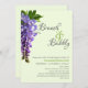 Den här designen har vackra Wisteria-blommor till brunch och bubblande inbjudningskort för möhippan. Fyll i fält, ta bort all text och/eller klicka på anpassa för att välja det teckensnitt som du vill använda färg, storlekt och stil.