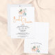 Det här lodrät har inbjudningskort för möhippan en persikobegonia blommigt matris längst upp och längst bak i grund. Alla duschdetaljer finns på framsidan med parets namn på baksidan. Anpassa fälten i mallen eller klicka på Anpassa för att välja ett teckensnitt stil, storlekt och färg som du vill använda.