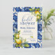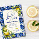 Fira den blivande bruden med dessa vintage Medelhavsblå plattor och citroninspirerade snyggtar. Den här Vintagen Blåplattan och citroner Inbjudningskort för möhippan kan anpassas med dina egna uppgifter. Utformningen har en blå bakgrund i vintagen med realistisk citrongrafik.