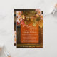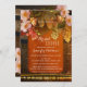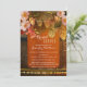 Ett vin-temat inbjudningskort för möhippan som innehåller vindruvor med druvor, persikofärgad färgad ro och sträng ljus på en rustik trätunna med vin.