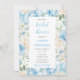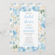 Den här söta och vismliga vattenfärgen inbjudningskort för möhippan är blå och vit med grönt löv. Texten kombinerar handskript och sans serif typsnitt för en snyggt och ett modernt utseende. Det här är perfekt för en vår- eller sommarmöhippa.