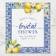 Inbjudningskort för möhippan har ett ljusblått tema med citrusfrukter.