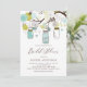 Inbjudan gäster till ditt evenemang med anpassadet inbjudningskort för möhippan. Den har vismblått och grönt Mason burk, hjärtan och blommor. Anpassa den här månen burk inbjudningskort för möhippan genom att lägga till dina uppgifter. I anpassningsbar är inbjudningskort för möhippan perfekt för vår och vinterduschar. Det finns i andra färg och i andra kartonger.