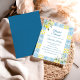 Fira kärlek och glädjen med våra blå Medelhavsbrickor och Lemons Inbjudningskort för möhippan från vår nya samling! Förbered den tidlösa skönheten hos blå och vita mosaikplattor, som påminner om flytande Medelhavsstränder, försedd med delikat citron-mönster som framkallar vitessen hos citrusfruktodlingar. Varje design är noggrant konstruerad med hjälp av vattenfärgsteknik och ger firande en aning konstnärlig charm. Anpassa inbjudan med personlig text och bjuda in dina nära till i väntan på kommande nybörjare. Den omvända sidan har en marenblå nyans som kompletterar Medelhavstemat på ett perfekt sätt. Gör din möhippa till en oförglömlig upplevelse av vår fantastiska samling, där varje detalj återspeglar en Medelhavsflykts värme och elegans.
