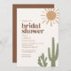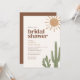 Vänner och familj i inbjudan för att fira den brud som ska vara med den här boho inbjudningskort för möhippan, med kalkfärg och vattenfärg sol i varmt färg.