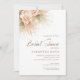 En boho inbjudningskort för möhippan med en fantastisk bild av persikoblommor som accentueras med torkade handflatan löv. Utformningen erbjuder mjuka persikor- och gröntar för att skapa en romantisk ambians.