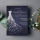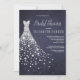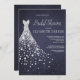 Vita, blanka diamanter med bröllop klänning på en mörk vid midnatt, blå kritersbakgrund skapar en enkel modern elegant inbjudningskort för möhippan.