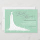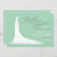 Elegant inbjudningskort för möhippan för snyggten brid to be har ett ornate calligraphy-skriptteckensnitt och en flytande bröllop-gryga. Rullans blomning, blommor och fjäril-detaljer visar den eteriska klänningen. Vit, mynta grönt/sylt och pewter grått design färg.
