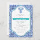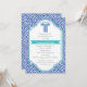 Grekiska nyckel mönster och blå, akvarikolonn Grecian bröllop inbjudningskort för möhippan med blå och akvatisk kontur, gräns av grekisk nyckel eller Meander eller grekisk fuktig mönster i blått och vitt, en turkosbanderoll och en blå, akvakolonkolonn. Text i grått. Den här eleganten, den moderna utformningen med vintage och forntida inslag är perfekt för ett grekiskt och/eller grekiskt bröllop-tema oavsett var det tar ställe i Grekland eller någon annanstans.