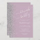 Den lämnat kant i eleganten är en modern brunch och bubblande inbjudningskort för möhippan med ett silver faux glitter gräns. Anpassadet kombinerar vit handskrift, tryckplåt och kursivt typsnitt mot en dammig lilak bakgrund. Den omvända sidan har en matchande design för lilac och silver.