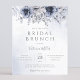 Elegantens moderna blommigt-budgetinbjudningar med brunch-möhippa som innehåller dammiga blåfärgade blommor med handskriven kalligrafi.