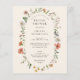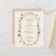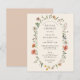 En elegant inbjudningskort för möhippan i vintage boho sommar blommigt som innehåller vildblommor med vattenfärg och grönska med en bågform inslag som lyfter fram detaljerna i möhippan.