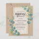 Budget rustic eucalyptus Kraft, guld inbjudningskort för möhippan.