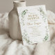 "Inbjudan dina gäster till en charmig Möhippa! Vårt budgetvänliga inbjudningskort för möhippa är lika förtjusande som de har råd med. Med en underbar vattenfärgbild av grönt anger de perfektens ton för ett firande. Inuti finns texten elegant skriven med ett seriöst typsnitt, där den brud som ska visas i namn är markerad med ett modernt skript, och ett litet charm läggs till. Gå med oss för ett firande av kärlek och skratt!