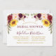 Modern Elegant Watercolor Burgundy Blommigt Inbjudningskort för möhippan Card omfattar burgundy, rött, rosa ros, solblommor och botaniskt grönt löv. Trendig Calligraphy Script. Guld Burgundy Tillbaka.