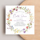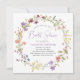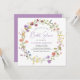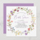En elegant inbjudningskort för möhippan med "Möhippa" som visas i ett chic lavender lila-skript och en boho-inspirerad krans av lila, rosa, persikor och gult vildblommor. Anpassa bridens namn och duschdetaljer i enkel lavender- och grått-skrift.