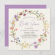 En elegant light kräm inbjudningskort för möhippan med "Möhippa" som visas i ett chic lila-skript och en andedräkt av lila, rosa, persiko- och gult vildblommor. Anpassa brudens namn och duschdetaljer i enkel lila- och grått-skrift.