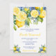 Vacker inbjudningskort för möhippan med citroner, blåa blommor och grönt löv. Perfekt för en möhippa. Ord kan ändras till kostym med dina egna uppgifter eller krav