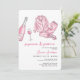 Cute girly pyjamas och åklagartemed inbjudningskort för möhippan med en vattenfärgad illustration av rosa pyjamas och flaska vid åklagarmyndigheten