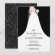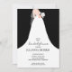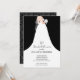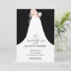 En brud i hennes bröllop-klänning mot svart bakgrund, inbjudningskort för möhippa har också en blommigt ro-kontur på baksidan. MATCHING-objekt i vår samling.