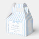 Utformning av en elegant-förmånslåda med en vattenfärgsblå blek och blå och vit stripor. Här visas för en bröllop, men all text kan vara personlig till händelsen (du kan också lägga till eller ta bort fält från verktyg i designen). Det skulle också fungera bra för en babydusch, möhippa eller födelsedag.