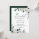 Hand målade vattenfärgen blommigt inbjudningskort för möhippan med elfenbensvita blommor och emerald grönt löv med modernt kalligrafi och mörk framträder grönt färg i baksidan. Du kan anpassa texten, teckensnittet stil, färg och storlekt framför och bakom inbjudan. Du är välkommen att kontakta mig för matchande artiklar.