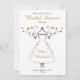 Elegant Guld accent Inbjudningskort för möhippan designad med en Bridesmaid Dress på vit bakgrund med guld löv. I texten på framsidan ingår: Brides Namn, händelsens datum och tidpunkt. Den omvända texten innehåller: Platsinformation, OSA och registerinformation för Möhippa. Om du vill anpassa dig infogar du bara texten i vår enkla mall och ersätter exemplet.