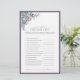 Skapa minnen som kommer att räcka under en livstid med den förträffliga Eleganten Lavender Blommigt Möhippa Game! Lush Lavender-blommigtens hörnmotiv förstärks av blått grönt och gyllene botaniska löv som är delikatinerade i en mjuk lavender-skugga, vilket skapar ett oförglömligt utseende som kommer att ge möhippan liv. Perfekt för utomhus- eller inomhusmöhippor ger det här klassiska spelet underhållningstimmar samtidigt som familj och vänner möts. Njut av det quintessentiella spelet så vackert som möjligt. Kontaktdesigner för matchande produkter. Visa sviten här: https://www.zazzle.com/collections/elegant_lavender_floral_watercolor_bridal_shower-119650696454220981 Copyright Anastasia Surridge for Elegant Inbjudningskort, alla höger reserverade.