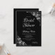 En elegant svart och vitt inbjudningskort för möhippan med ornerade diagonalhörn snöre till ram i den vita texten.